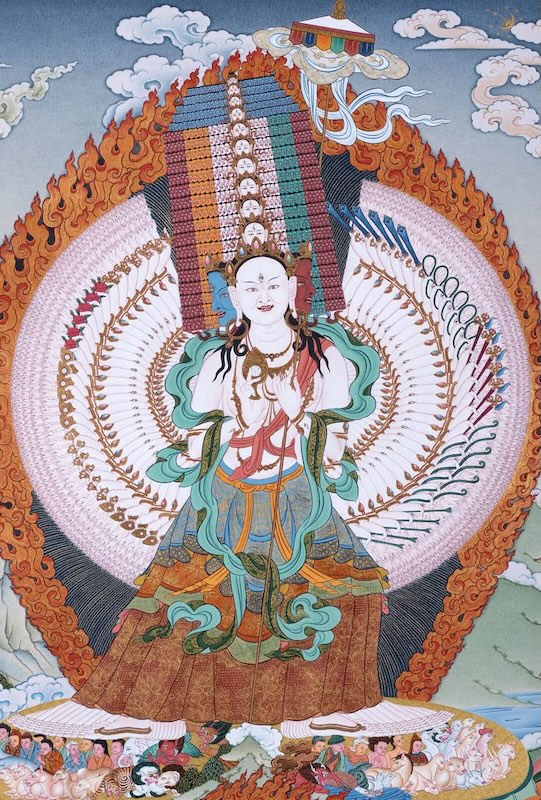 Sitatapatra: Each palm of her hands and each sole of her feet has an eye, symbolising her ability to watch over and protect all of humanity simultaneously. Her name means ‘White Parasol’. She holds this attribute to symbolise the protection she offers against illness, disasters and negative forces.